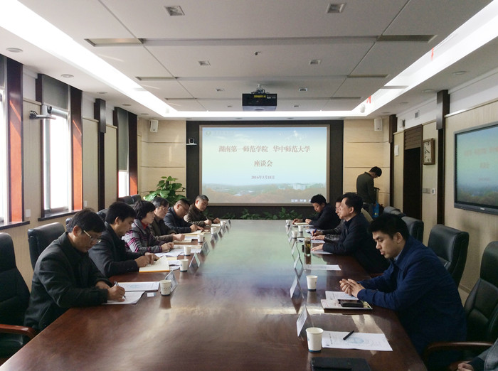 会上,在考察组一行观看了华中师范大学《学在华师》宣传片后,彭南生副校长致欢迎辞,并重点介绍了学校的“一体两翼”办学思路、人才培养、学科发展、科研成果转化、教育综合改革、师范生免费教育以及信息化、国际化办学等情况。童小娇校长介绍了我校的办学基本情况、近年来开展的农村小学公费定向师范生培养模式改革以及“十三五”时期建设发展思路、教育教学改革方向与重点等。曹兴副校长介绍了我校学科建设和科研管理工作的基本情况。两校参加会议的职能部门负责人进一步就人才培养方案制(修)订、课程建设与改革、学生学业评价、信息技术与教育教学融合、教师教育信息化、协同创新中心建设、教师培训与发展、科研经费管理、质量监测与评价等进行了深入的沟通与交流。