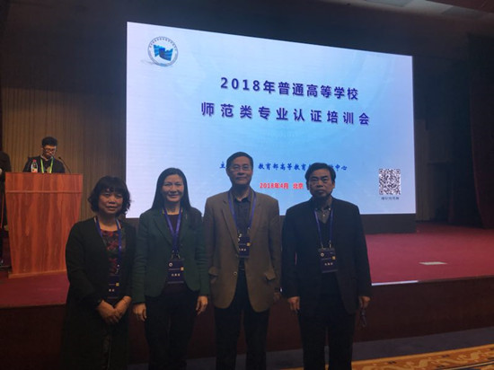4月10日至11日,2018年普通高等学校师范类专业认证培训会在北京召开,我校副校长江正云及教学质量监控与评估中心主任陈梦稀、教育科学学院院长蒋蓉、教务处副处长温群雄等参加了现场会议。