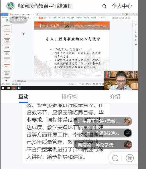 此次培训是我校首次组织校院两级督导进行的专题培训,各学院高度重视,积极配合组织工作,参培人员学习热情高,培训及互动反响热烈,对更新督导理念、拓展督导思路、改革督导方法、提升督导能力起到了很好的推动作用。教学质量监控与教师教学发展中心将组织校院两级督导进行线下的专题研讨会,交流学习经验,探索改革教学督导的方式,进一步提升教学督导的理论素养及教学指导能力,真正把课堂教学监督指导上升为对整个学校教学与育人的一种创新推动,促进教师教学发展,提高教学质量。