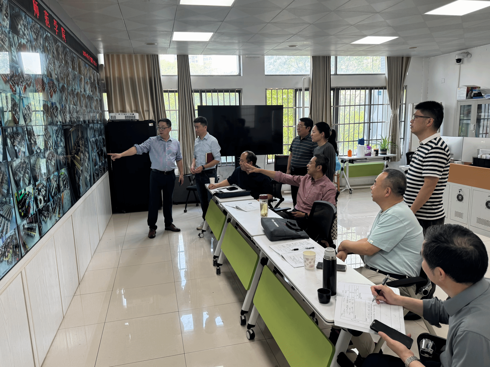 上午第一节课,校督导团专家、质发中心负责人齐聚学校中控室,通过覆盖全校教室的智能监控系统,远程观摩师生教学,对当日课堂教学情况进行全方位巡查。中控大屏实时切换不同课堂画面,巡查组重点聚焦教师授课状态、学生课堂参与度、教学设备运行情况及课堂纪律规范等核心指标。