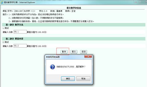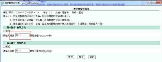 (四)评教过程中,若出现代替他人评价、篡改评价数据、拉票、打击报复或其它不公正、不文明的行为,经调查核实后,将给予相关责任人严肃处理。所有评分人须认真、仔细、慎重,评价分数一旦提交,一律不允许修改。