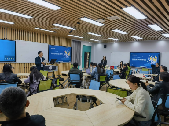 这次我们邀请了希沃高级讲师黄兰担任主讲,黄老师首先介绍了高校智慧教室的基本功能,然后围绕如何轻松开启智慧教学,讲解了“希沃”智能交互平板硬件的使用、触控操作、PPT小工具、电子白板、课件云存储和电脑投屏;围绕如何高效开启师生互动,重点介绍了“希沃品课”的课前考勤、通过学生端实时下发上课资料、提问答疑互动、掌握课堂动态、查看课堂报告等。