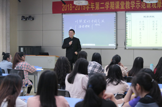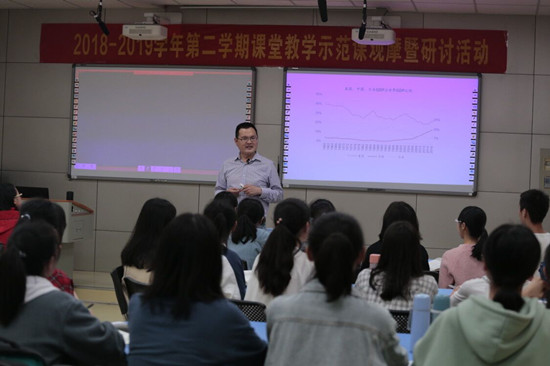 5月14日下午,由我校教学评估与教师教学发展中心主办的“2018-2019学年第二学期教学示范课观摩及研讨”活动在我校特立楼北501举行。副校长曹兴,教学评估与教师教学发展中心、教务处负责人,各学院负责人、教研室主任及近3年新进专任教师等120余人参加了本次活动。