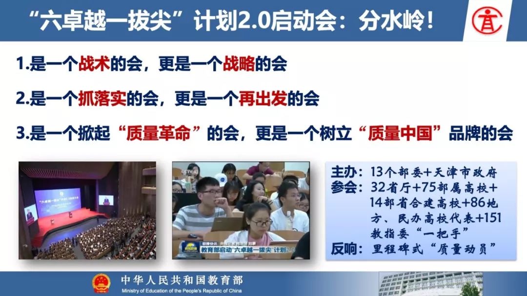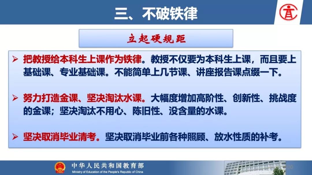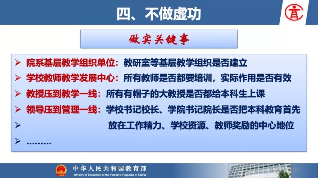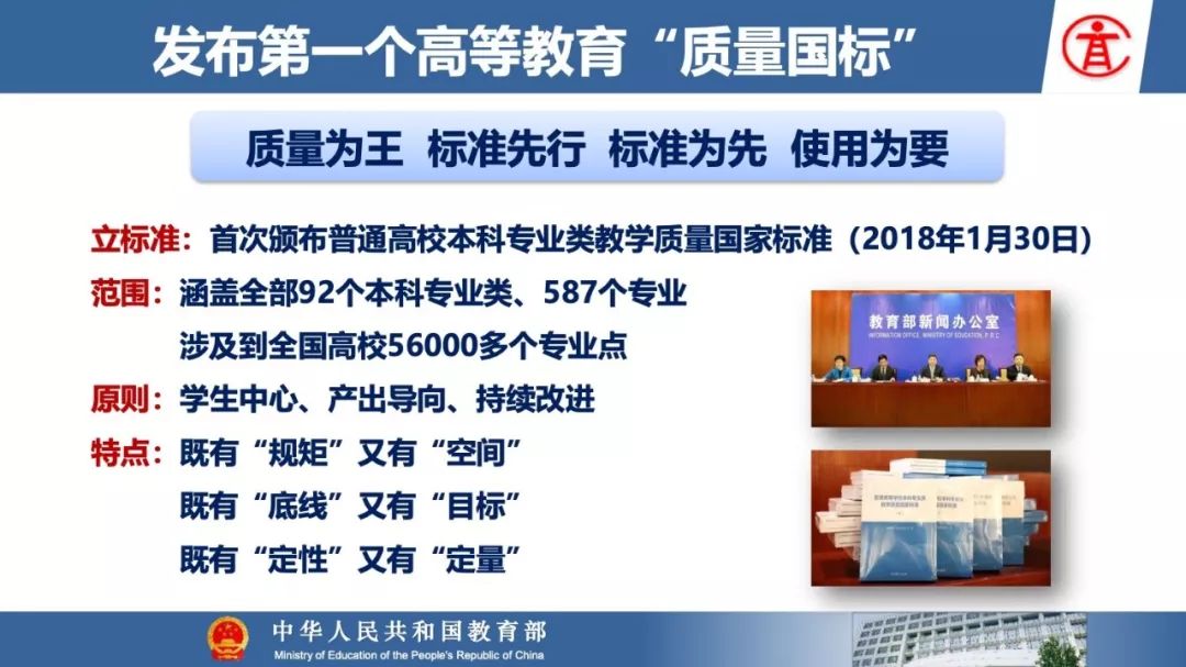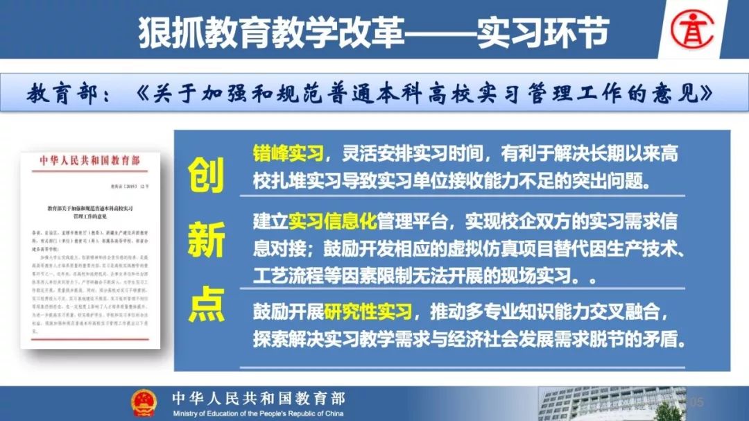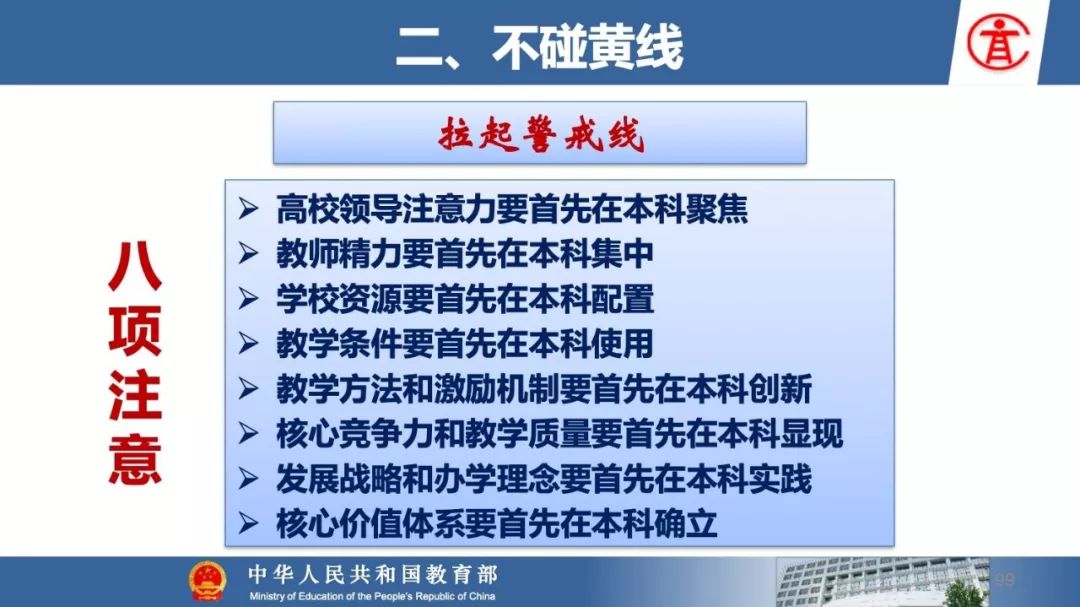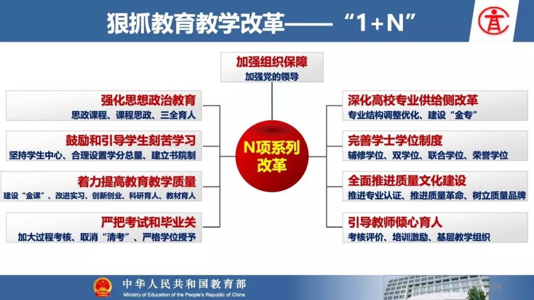 报告指出:要精准把握高等教育发展大势,超前识变、积极应变、主动求变;提到本科教育呈现新局面,“以本为本,四个回归”理念深入人心,“三个不合格、四个首先”得到有效落实;最后强调要通过一系列行动,把本科教育质量实实在在提起来,学校要狠抓教学改革,让金专、金课、金师随处可见!