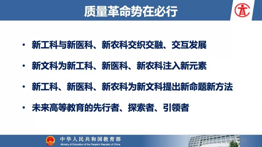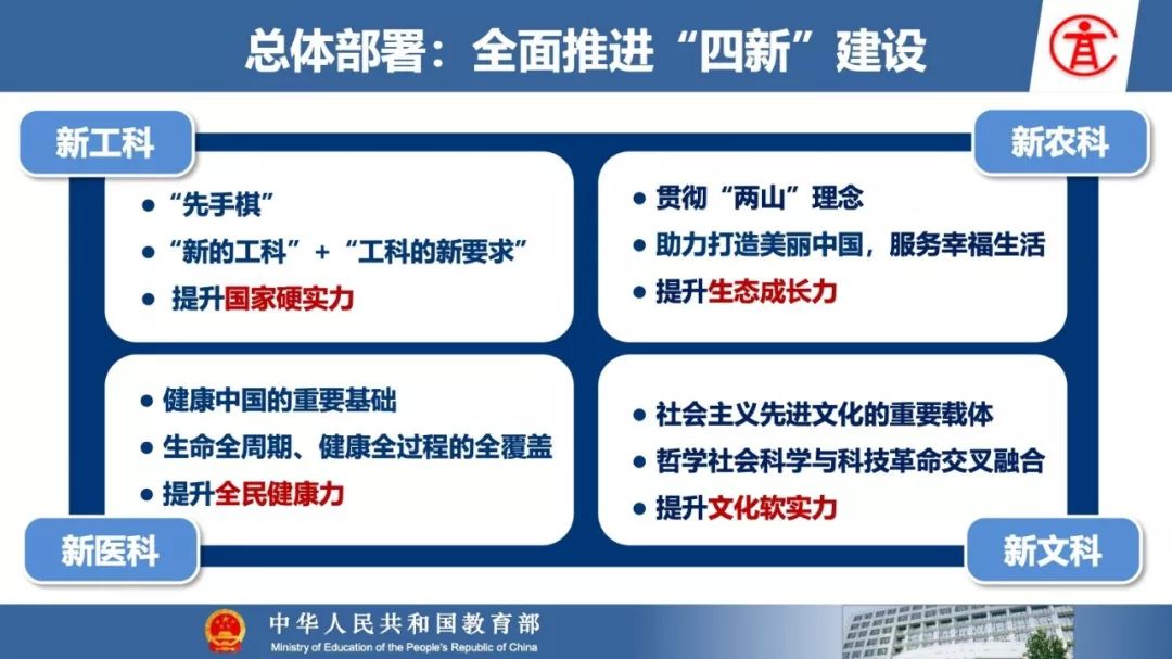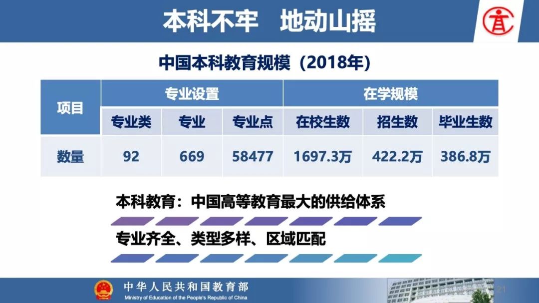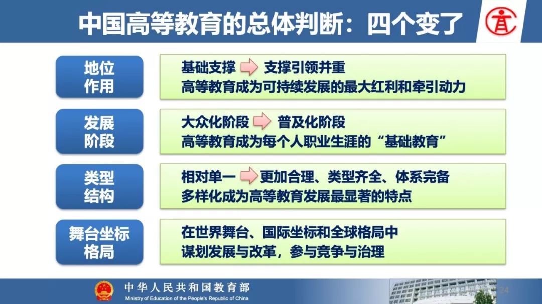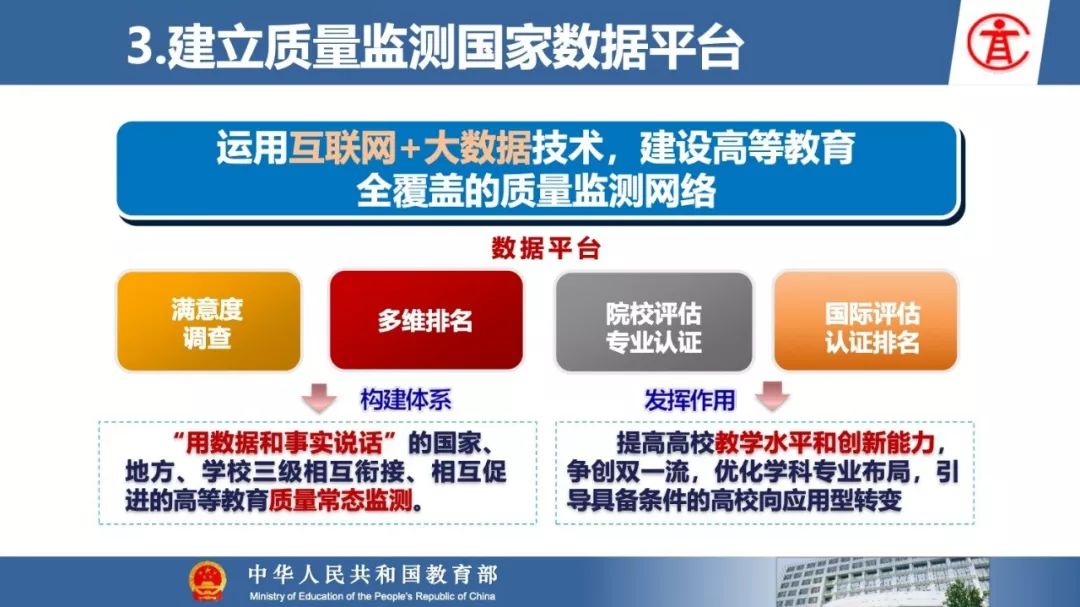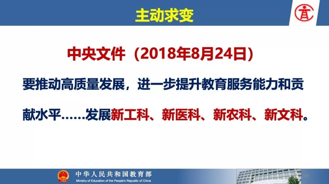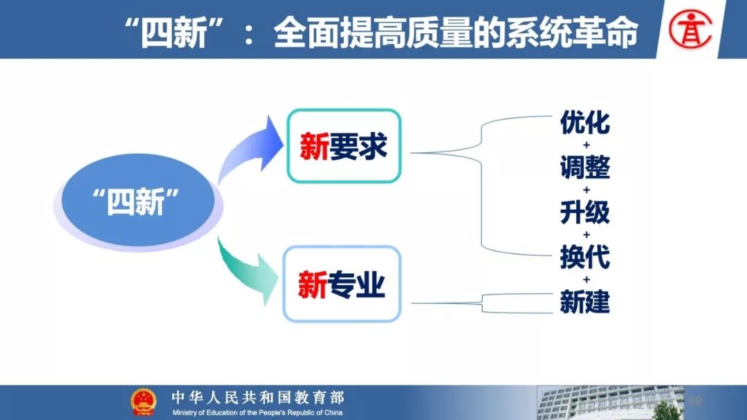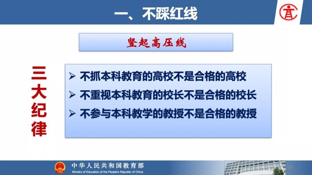报告指出:要精准把握高等教育发展大势,超前识变、积极应变、主动求变;提到本科教育呈现新局面,“以本为本,四个回归”理念深入人心,“三个不合格、四个首先”得到有效落实;最后强调要通过一系列行动,把本科教育质量实实在在提起来,学校要狠抓教学改革,让金专、金课、金师随处可见!