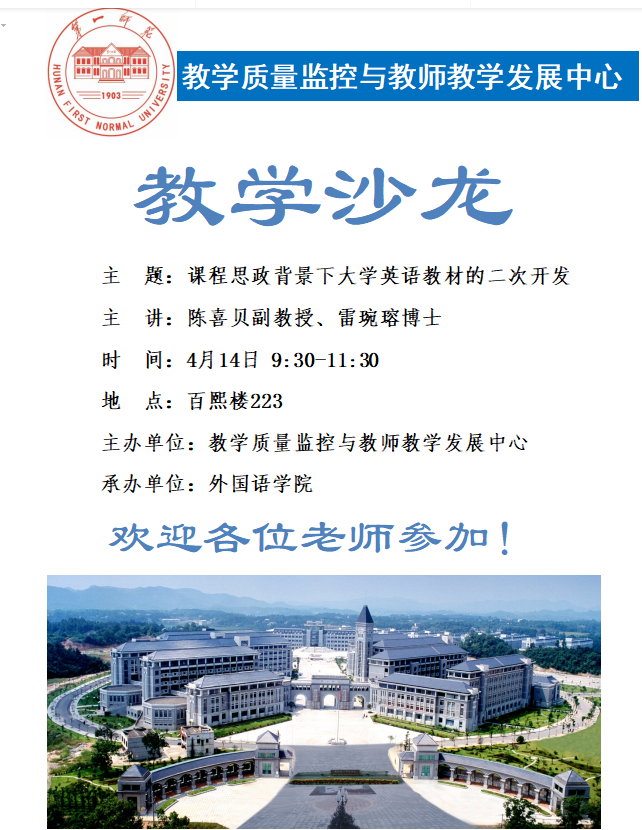 [作者: 出自: 教学质量监控与教师教学发展中心 发表时间: 2023-04-13 09:30:20 点击: ]