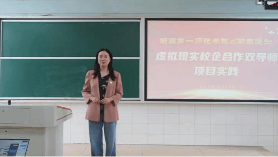 仪式上,遥知副总经理黄岚就此次合作发表了讲话。她谈到,本次合作是高校前沿理论与企业技术实践的强强联合。学院导师将为学生夯实人文基础、引领思想方向;企业技术专家则将带领学生掌握全景交互实践的全流程。她表示,遥知信息公司将依托自身的技术与经验,为学生的成长提供全程支持,助力其成为复合型创新人才。